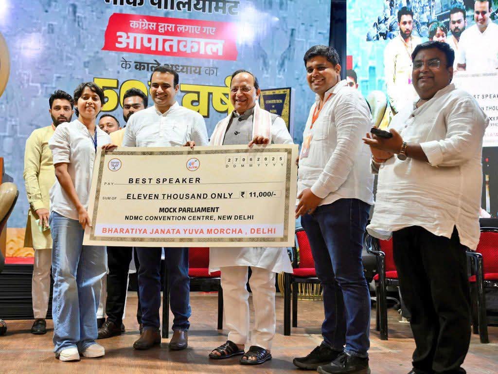 Emergency की 50वीं वर्षगांठ पर दिल्ली बीजेपी युवा मोर्चा ने मॉक पार्लियामेंट का किया आयोजन