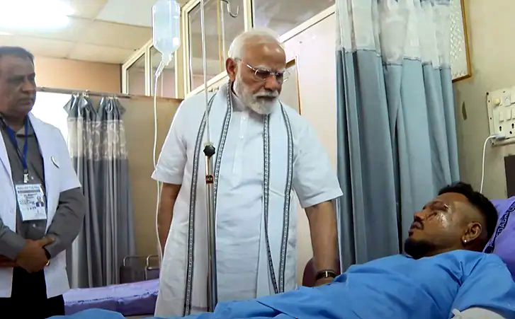 प्रधानमंत्री नरेंद्र मोदी ने सिविल अस्पताल में घायल यात्रियों से मुलाकात की और उनसे उनके स्वास्थ्य की जानकारी ली, रूपाणी परिवार से भी मिले PM मोदी, हादसे की जांच तेज़