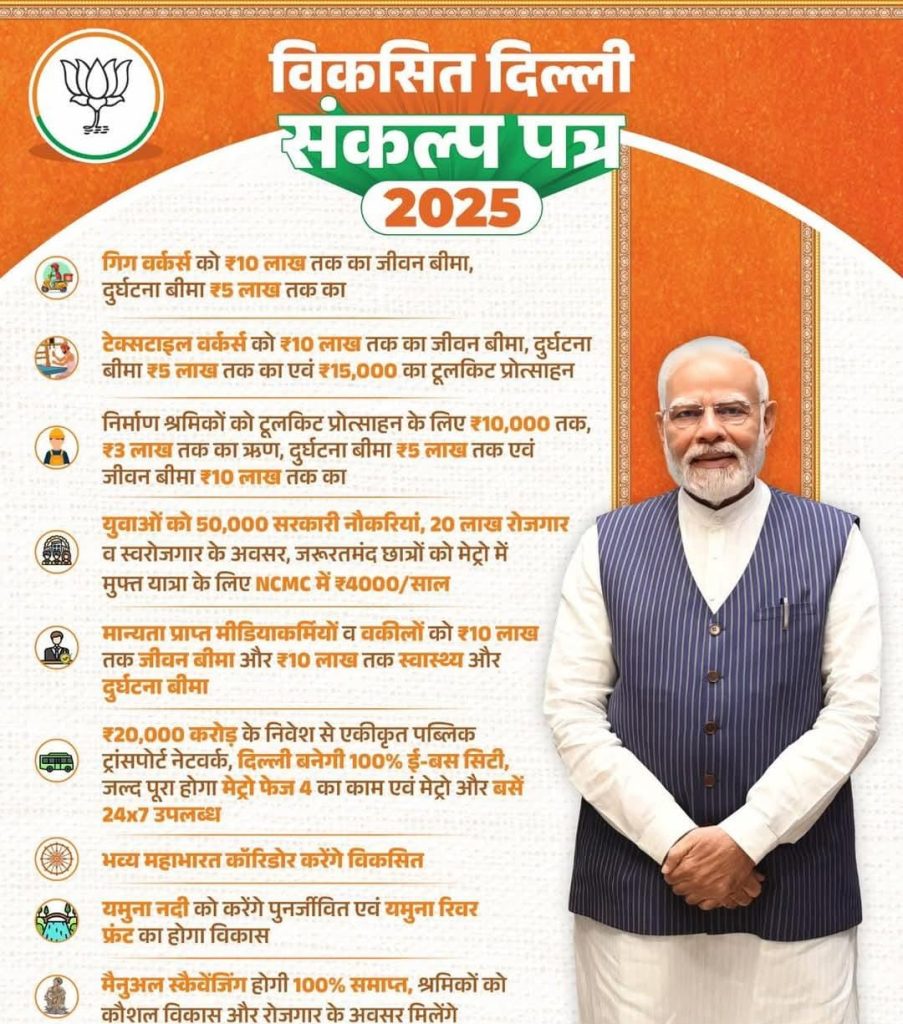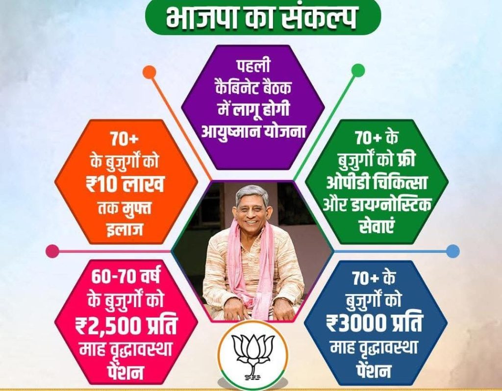 संकल्प पत्र में कच्ची कॉलोनियों को मालिकाना हक देने का वादा, 50 हजार नौकरियों का वादा, 13 हजार सील दुकानों को फिर से खोलने का वादा
