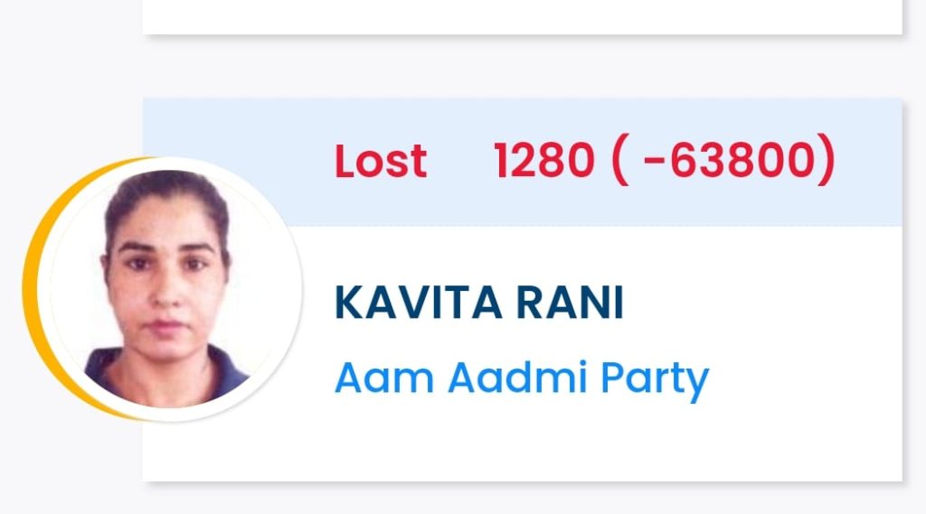 अगर बात करें आम आदमी पार्टी की उम्मीदवार डब्ल्यू डब्ल्यू ई रेसलर रही कविता रानी को 1280 वोट ही मिल पाए।
